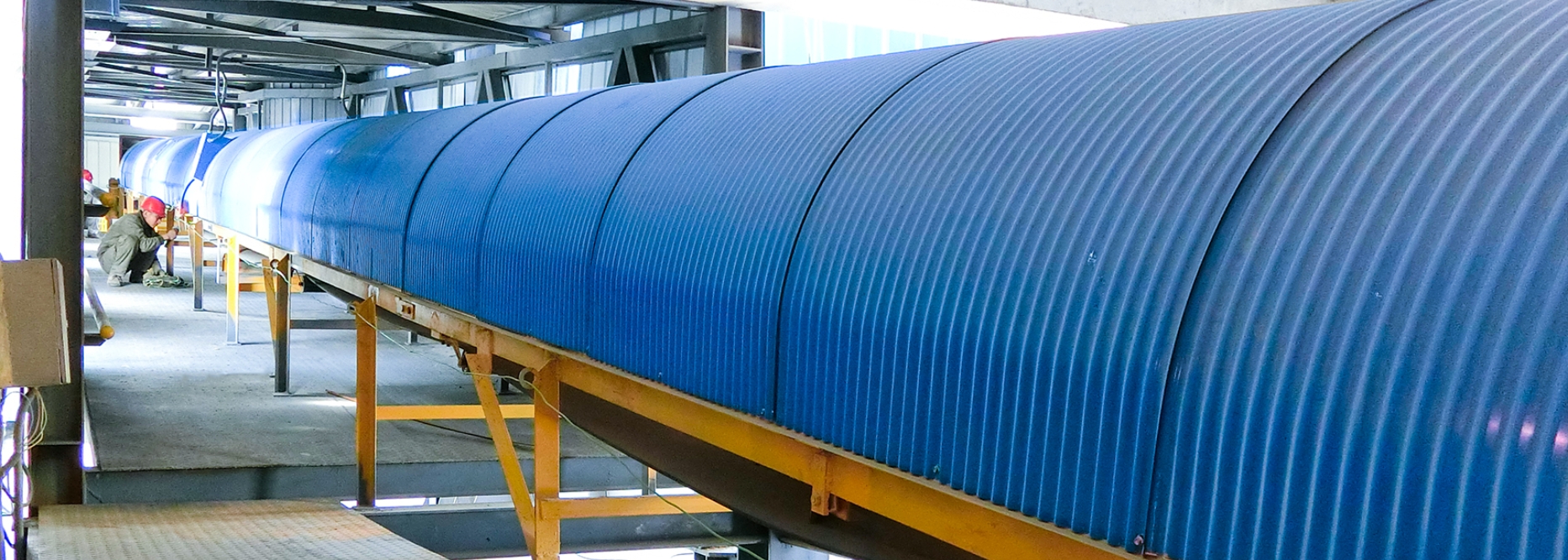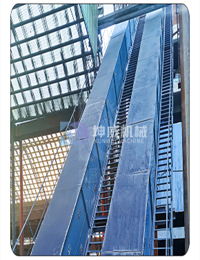 大傾角帶式輸送機(jī)是一種采用大角度進(jìn)行垂直輸送的設(shè)備。大傾角皮帶輸送機(jī)為一般用途的散狀物料連續(xù)輸送設(shè)備,采用的是具有波狀擋邊和橫隔板的輸送帶。具有通用帶式輸送機(jī)結(jié)構(gòu)簡(jiǎn)單、運(yùn)行可靠,維修方便等優(yōu)點(diǎn),具有可
